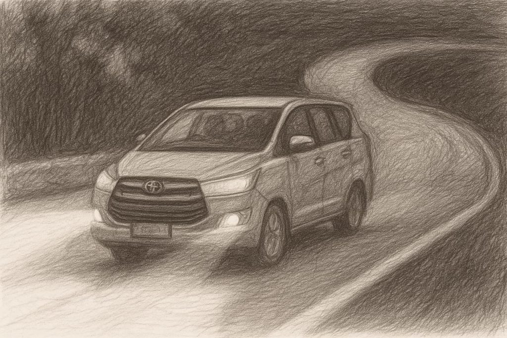 Sejak sore kami berdua berkemas-kemas dengan pakaian yang akan dipakai selama 10 hari perjalanan. Dua tas besar, 1 koper hitam doff dan tas kain abu-abu telah rapi diatas ubin granite hitam di teras rumah. Cahaya lampu yang terang dari atas tak mampu sepenuhnya menepis kesyahduan malam yang mulai merayap. Tak lama kemudian sebuah mobil Innova diesel warna krem 2500 cc tiba. Kami berdua adalah penumpang pertama yang dijemput, kemudian mobil melanjutkan perjalanan untuk menjemput penumpang lain yang sudah memesan sehari sebelumnya.