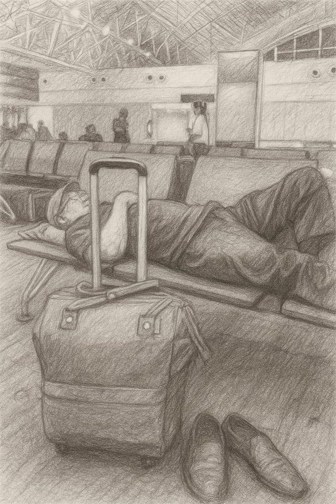 Sekitar pukul 12 malam, kami tiba di Terminal Kedatangan Bandara Sultan Hasanuddin Makassar yang megah dan modern, meskipun sebagian pembangunannya masih berlangsung. Kami segera menarik koper masing-masing menuju ruang besar tempat penumpang melakukan check-in atau menitipkan bagasi. Sambil meluruskan persendian, kami mencari dua baris bangku kosong untuk beristirahat sejenak dan menikmati Roti O. Meskipun sempat tertidur dalam perjalanan dari Enrekang ke bandara, rasa lelah akibat aktivitas padat beberapa hari sebelumnya belum sepenuhnya sirna. Tak lupa, kami membeli bolu khas Makassar dengan berbagai topping sebagai oleh-oleh untuk keluarga di Nganjuk.